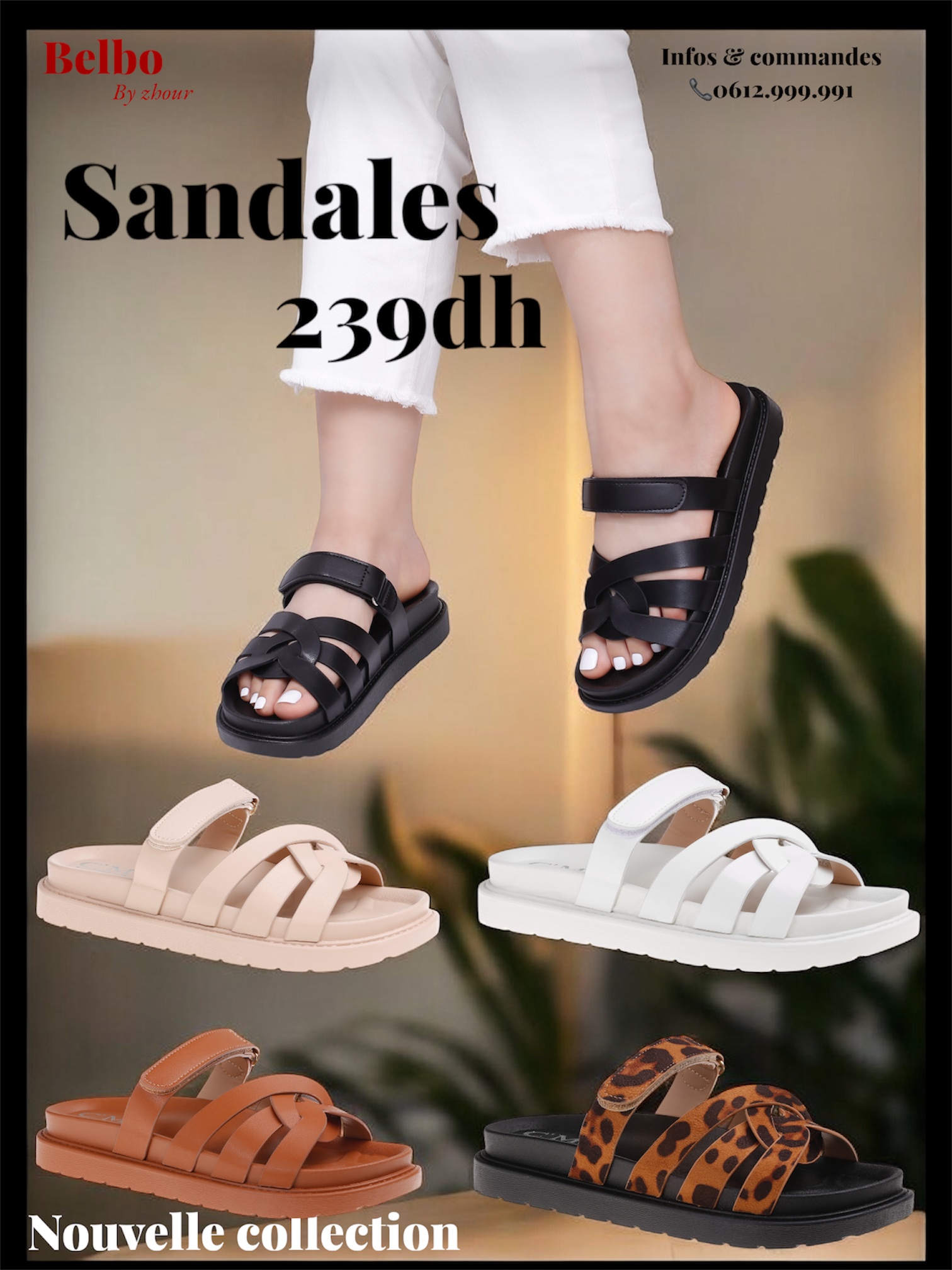 Beige, Blanc, Camel, Leopard, Noir
